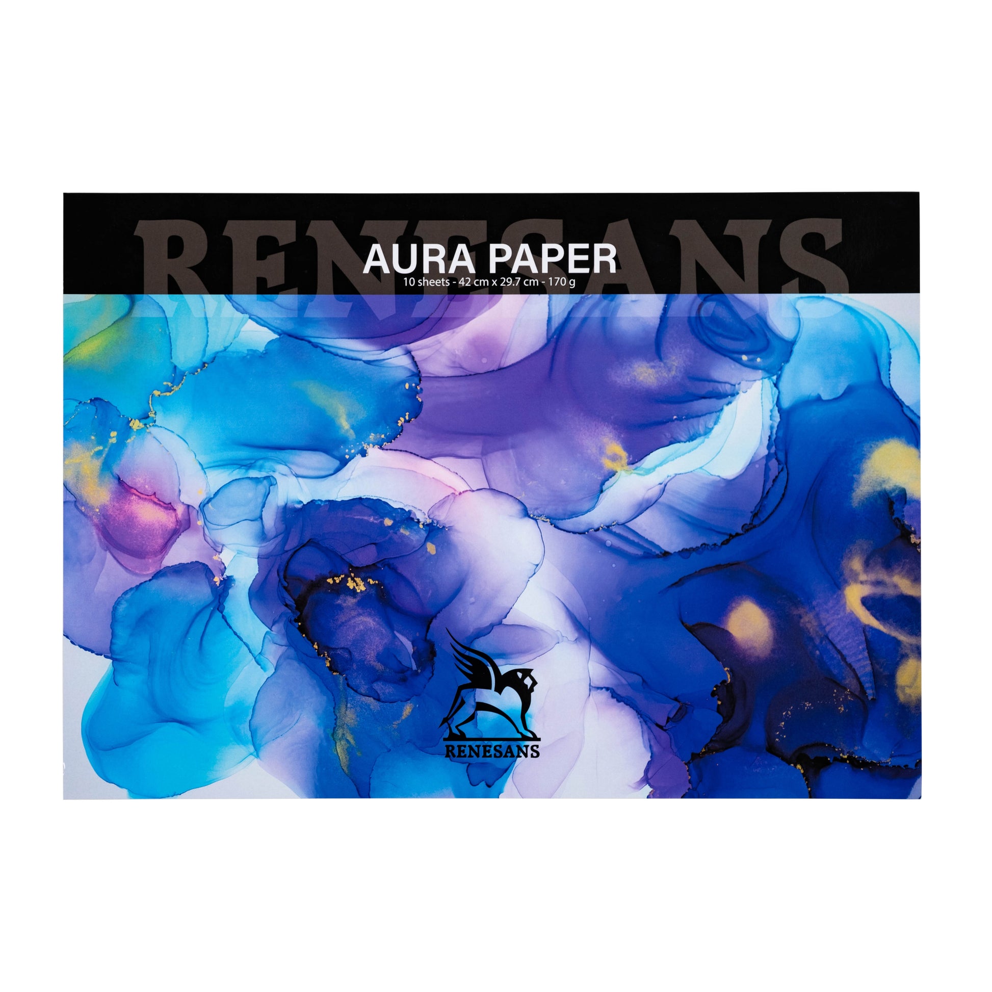 AURA PADS FOR ALKOHOL INKS – dedicated for use with alcohol inks AURA paper is a waterproof, stainproof and tree-pulp-free synthetic paper that allows You to create patterns and blendings that are impossible to achieve on conventional papers. Its special attributes and properties like super-smooth surface and durability makes it the perfect solution for a variety of spontaneous abstract painting, design and different processes with beautiful results. It comes in two weights – 170 g and 300 g. The double-sided coating makes the paper waterproof and does not deform when working with inks. Durable and hard to tear can be used in many mixmedia techniques as it truly reflects the color of the applied paint. It allows to work with many media or pigments and to achieve unique effects.