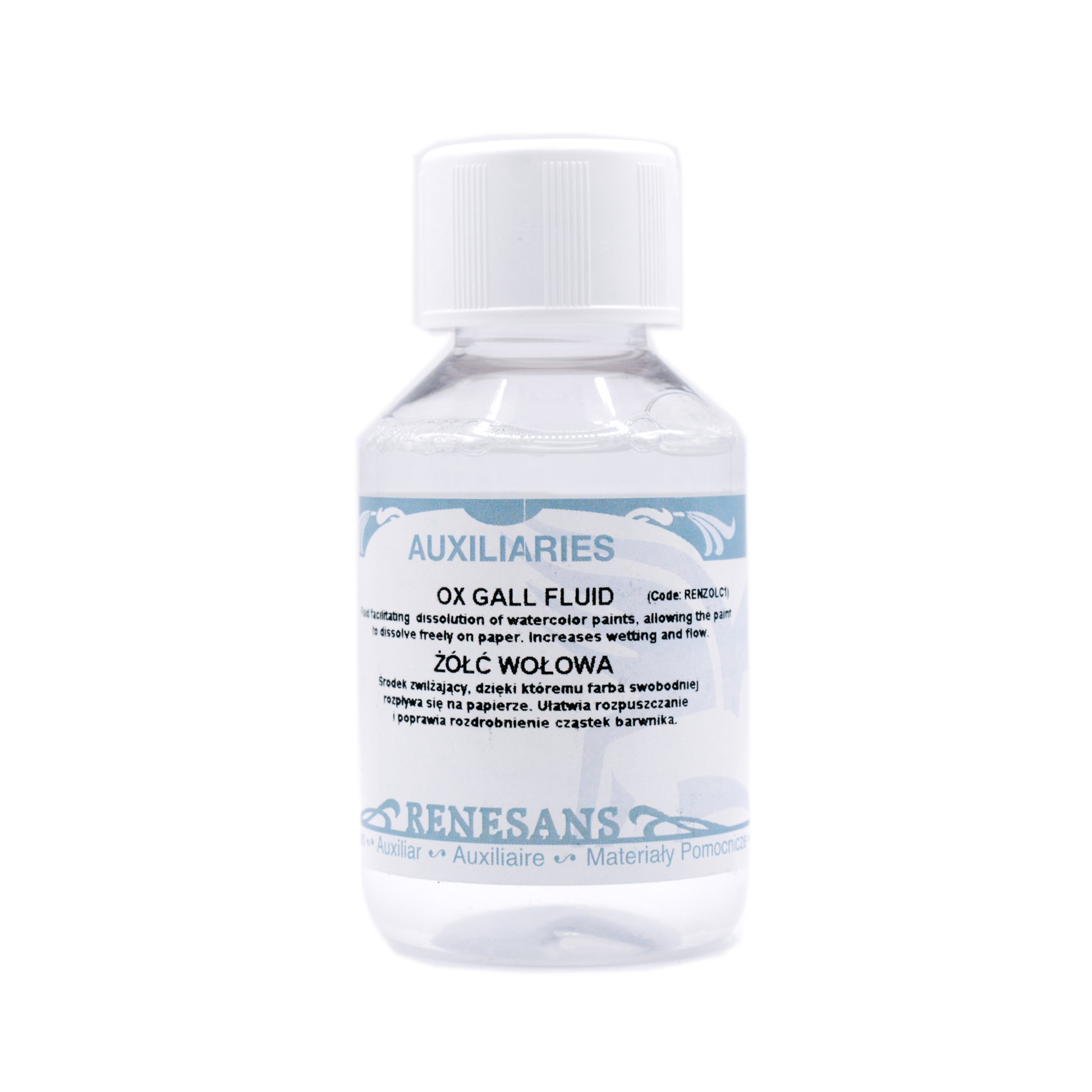 The RENESANS Ox gall liquid is a medium traditionally used in watercolour painting. It allows colour to spread in designated areas smoothly and helps do dissolute pigment particles seamlessly.