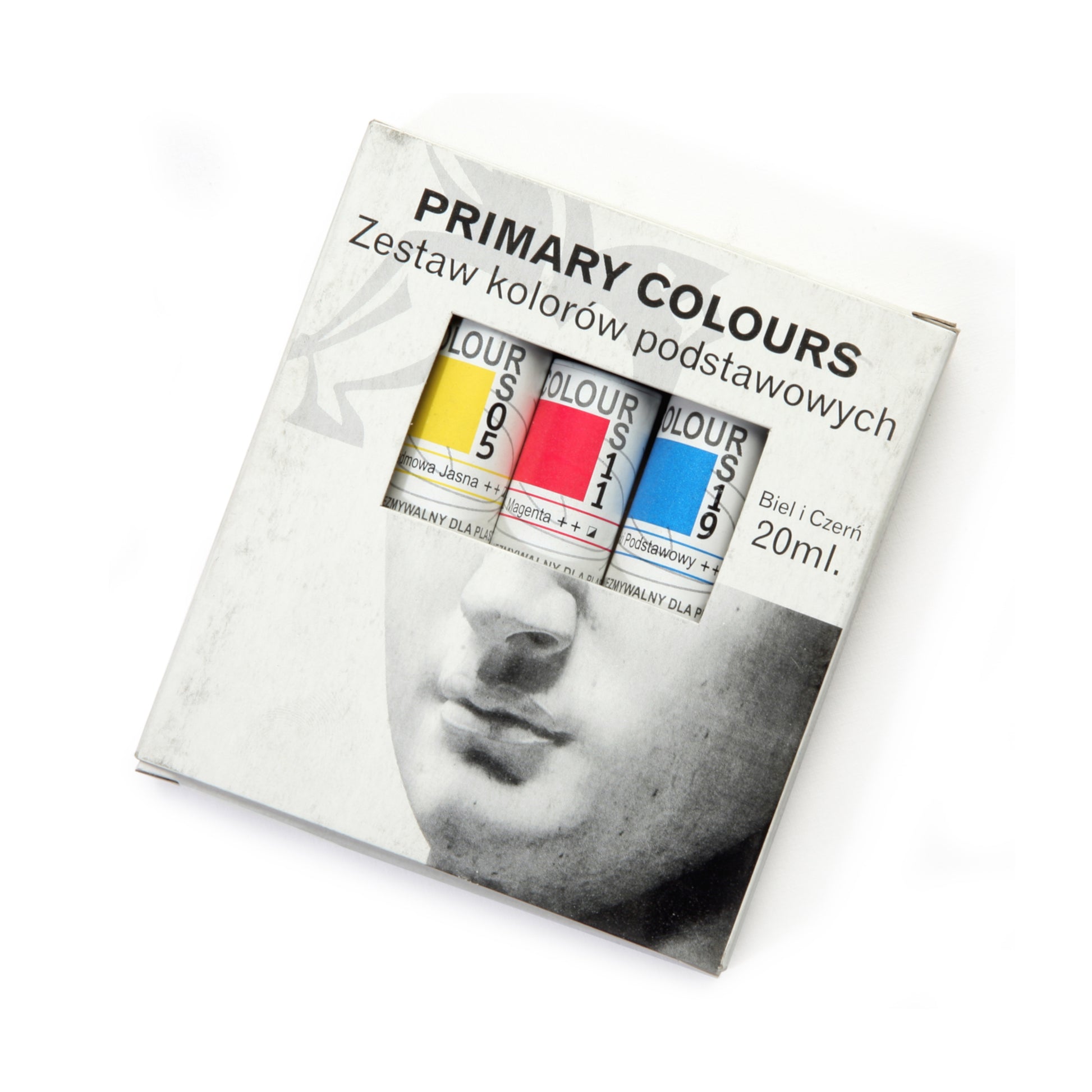This acrylic paint set is a great choice for beginners - besides the three primary shades, it includes black and white, allowing you to mix any desired colour.