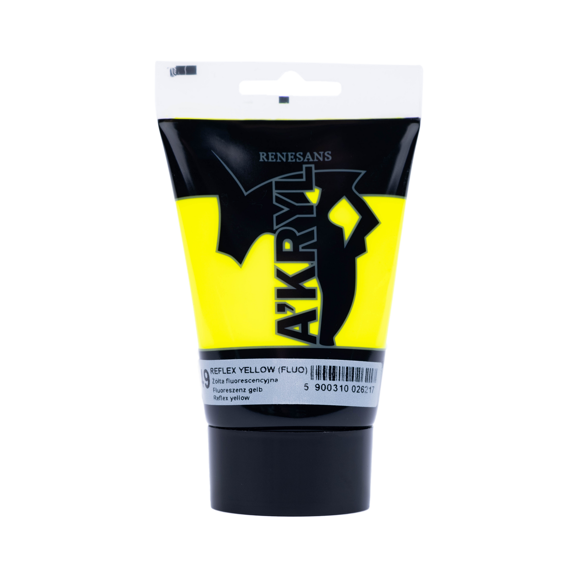 A’KRYL Renesans paints are available in plastic tubes, are light, and are convenient in travel and storage. They are available at a reasonable price and efficient. The range includes 70 paint colours, including metallic, phosphorescent, and fluorescent colours available in 100 ml tubes and 48 paint colours available in 200 ml tubes.