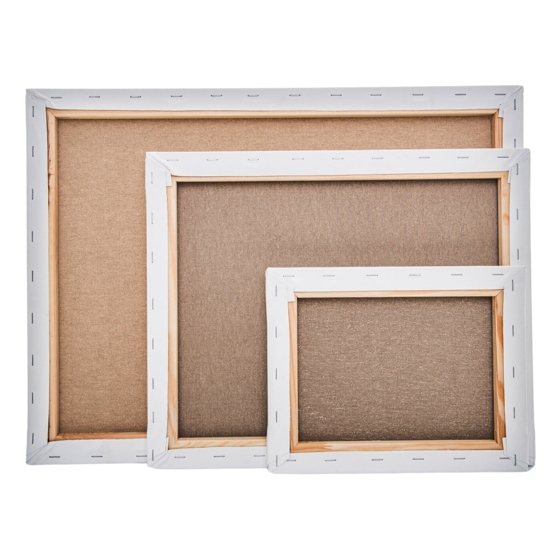 Strigarnir okkar eru úr 330g/m² ítalskri, úrvals bómull, sem er talin vera sú besta sem völ er á. Með tvöföldu grunnlagi og miðlungs áferð, bjóða þessir strigar upp á frábæran styrk og sveigjanleika sem gerir þá hentuga fyrir hvaða málunaraðferð sem er—hvort sem þú vinnur með olíumálningu, akrýl eða blönduðum miðlum. Hefðbundin áferð striganna skapar fullkomið yfirborð fyrir bæði mjúkar strokur og kröftugri málun.