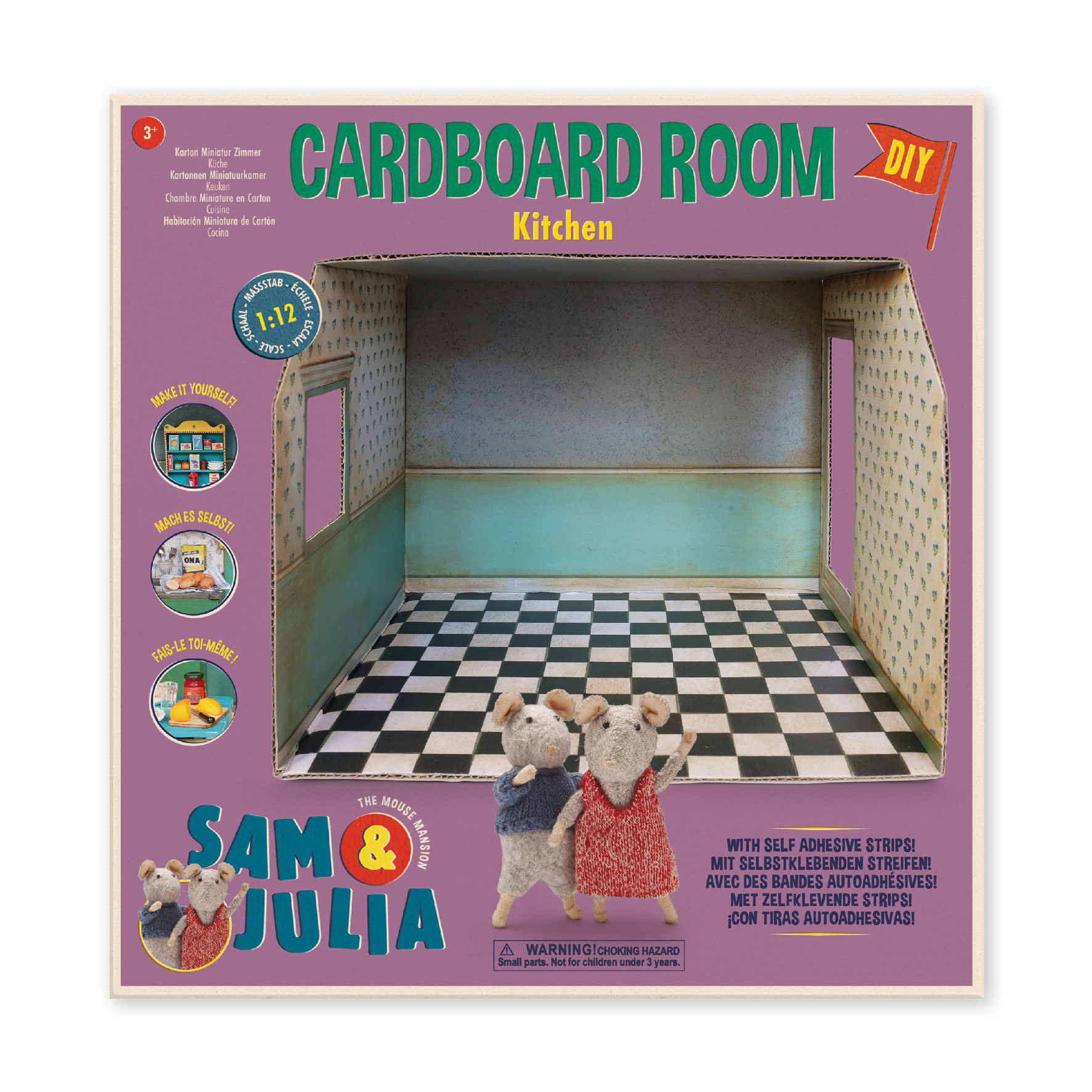 Þetta fallega smáherbergi er úr pappa og prentað á öllum hliðum með einkennandi veggfóðrum og gólfum úr Húsi músa. Kassinn er auðveldur í samsetningu með þægilegum flipum og tvíhliða límbandi.