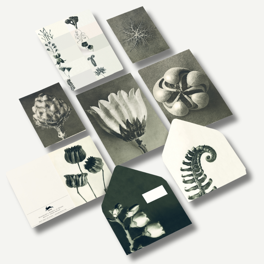 The PEPIN Correspondence Set, inspired by Karl Blossfeldt’s botanical art, includes 40 sheets of A5 writing paper in 4 unique designs, 20 matching envelopes, 8 refined greeting cards, and 25 assorted stickers and labels. Crafted in The Netherlands using European FSC-certified materials, this set blends eco-conscious production with exquisite design. Perfect for thoughtful letters or creative projects, it allows you to share the elegance of nature through your correspondence.