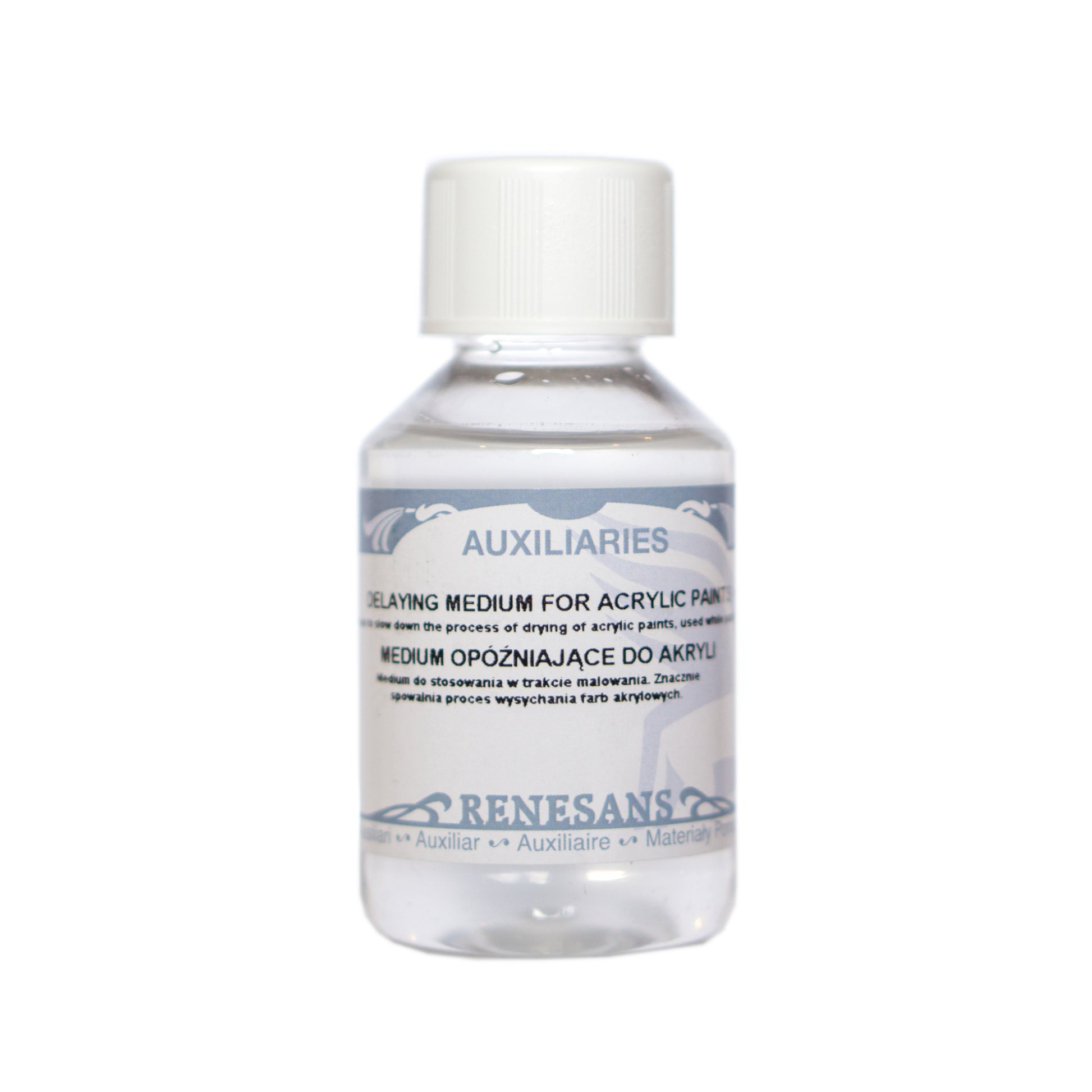 The RENESANS Delaying liquid medium slows down the process of drying acrylic paint without affecting its viscosity. It slightly increases colour saturation too.