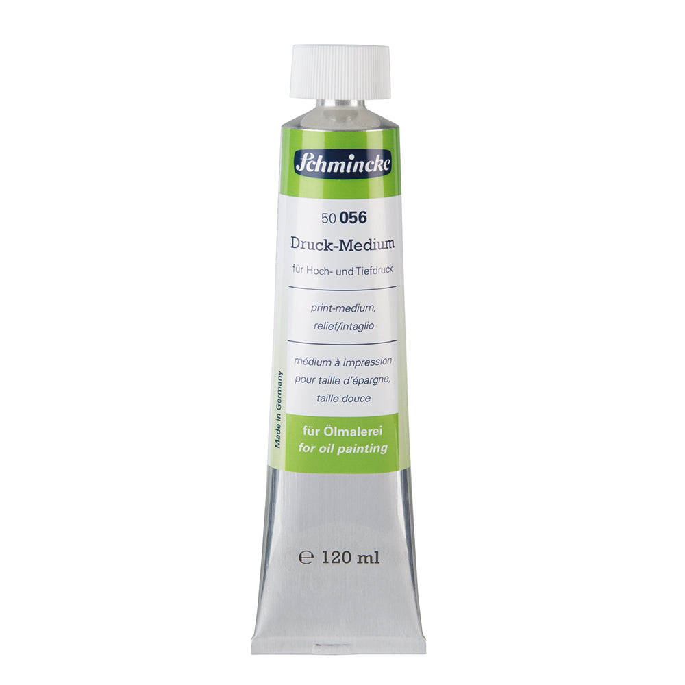 The Schmincke Print Medium is suitable for oil and resin-oil colours - to make oil colours suitable for printing (relief and gravure/ intaglio). Add the medium approx. 1:1 to the oil colour. Printing blocks and working equipment should be cleaned with all cleaning agents used in oil painting.