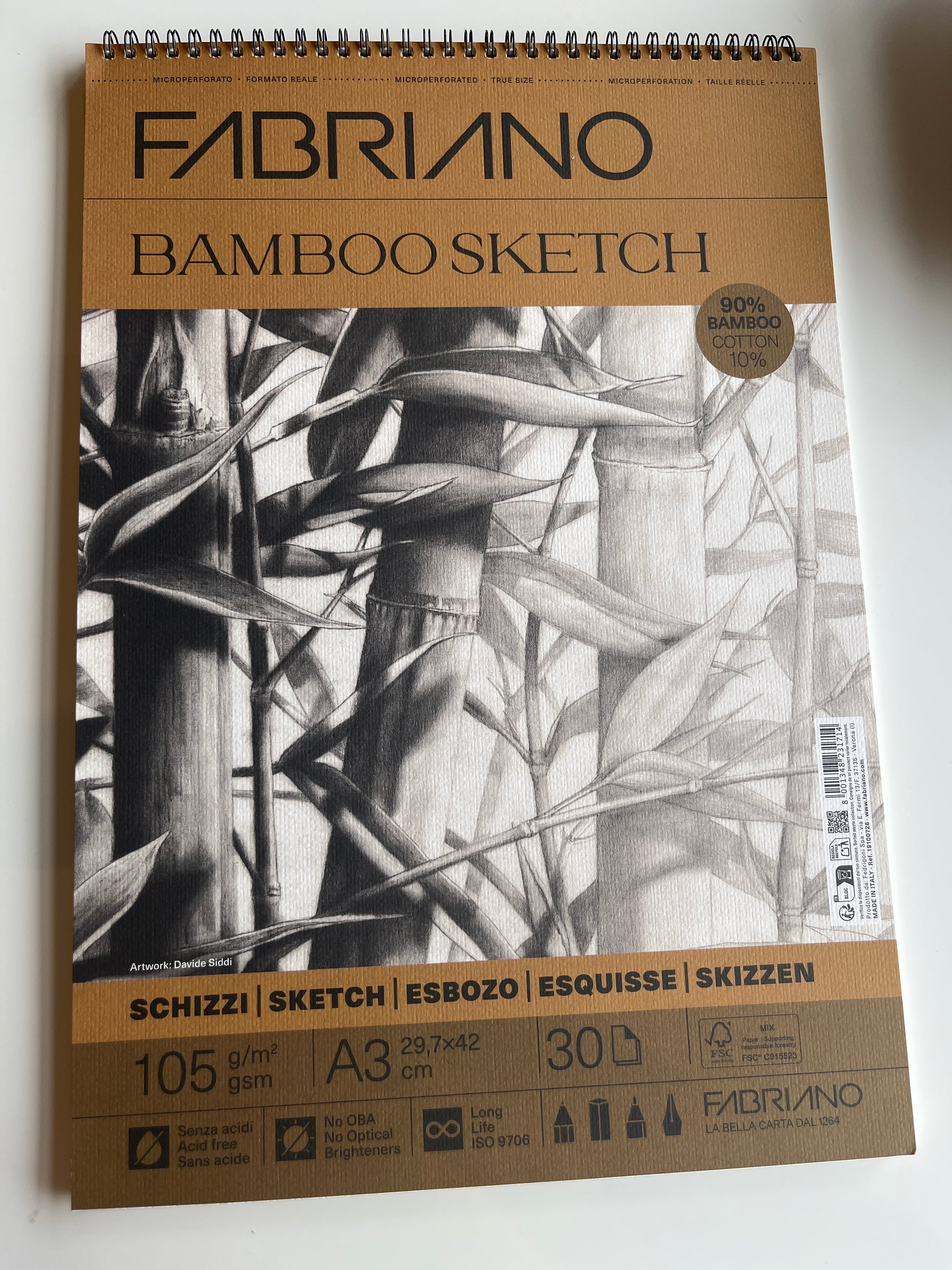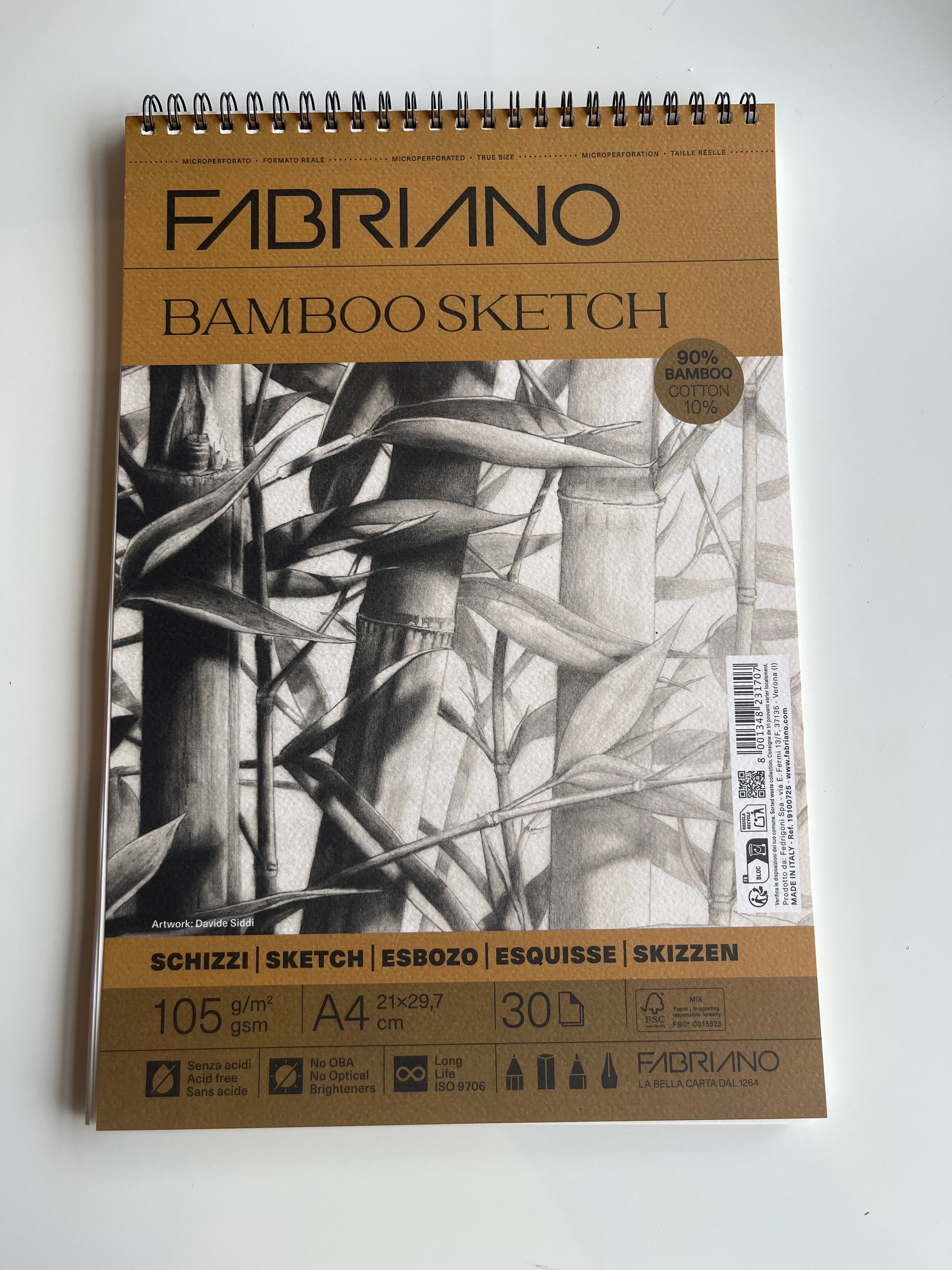 Made with 90% bamboo fibres and 10% cotton, this 105 g/m² paperis perfect for pencil, charcoal, fusain, blending stump and red chalk. Bamboo fibres ensure strength, while the natural grainallows for precise work in fine details and enhances expressive strokes.