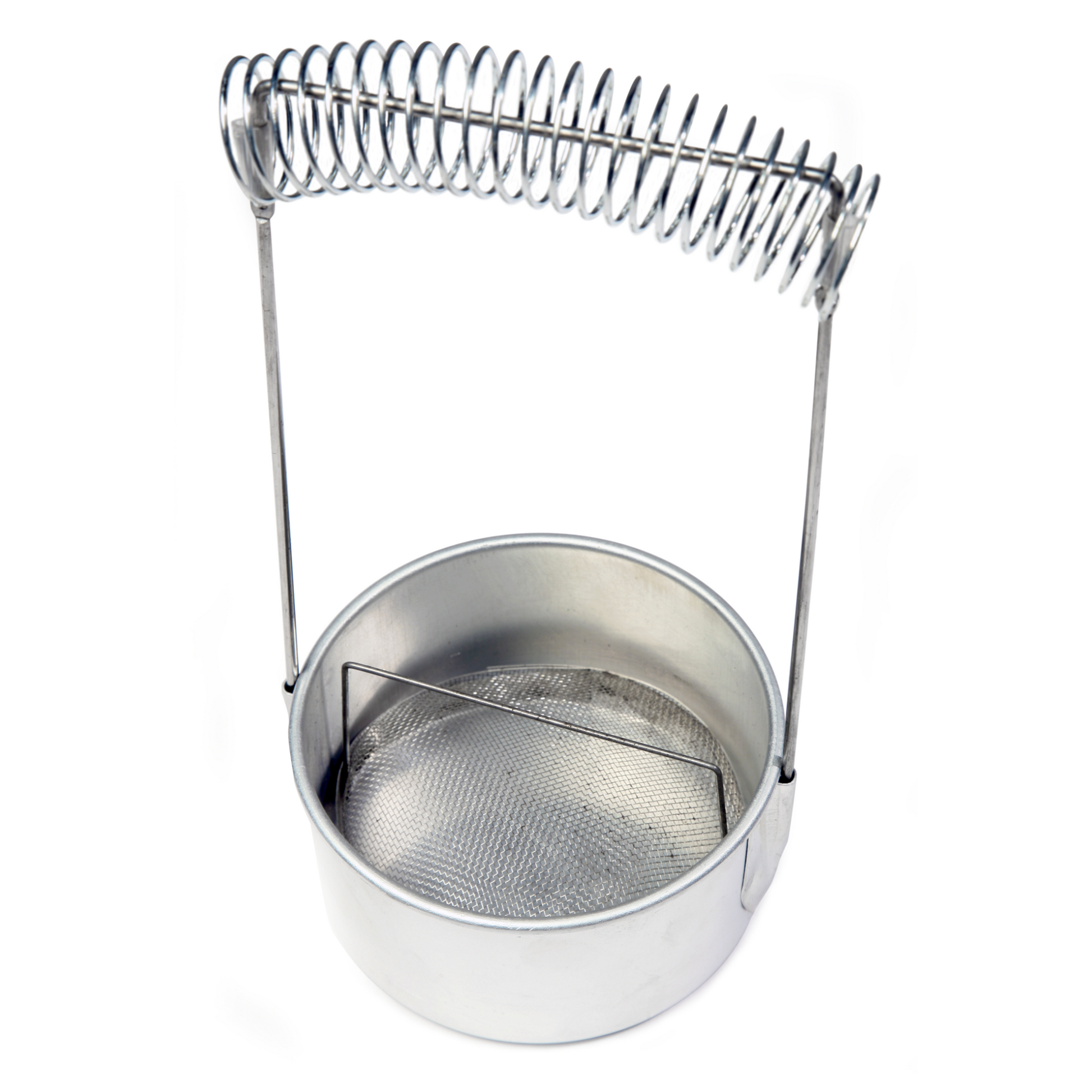 This compact aluminium brush washer is made of three parts: container, grid and drying station. The grid makes brush cleaning easier, because the brush hair doesn't touch the leftover pigment particles on the ground. The drying station allows to hang brushes for drying.