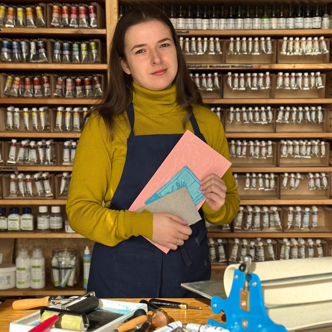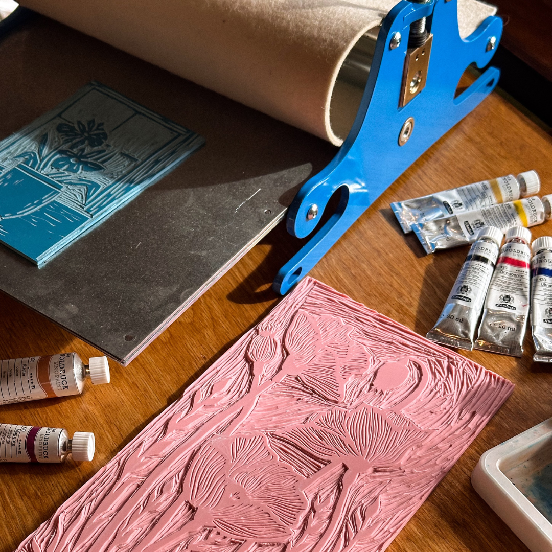 Kynntu þér heillandi heim prentlistar í skapandi og hvetjandi umhverfi. Í þessu námskeiði lærum við undirstöður prentlistar og förum í gegnum mismunandi aðferðir – frá einþrykki (monoprint) yfir í dúkristu (linocut) og að lokum vinnum við okkar eigið jóla póstkort sem lokaverkefni.