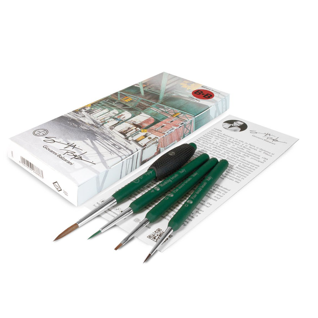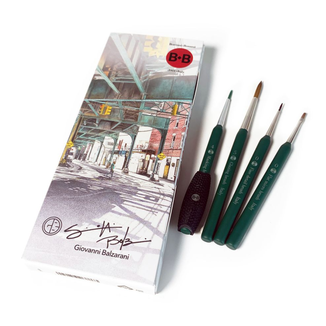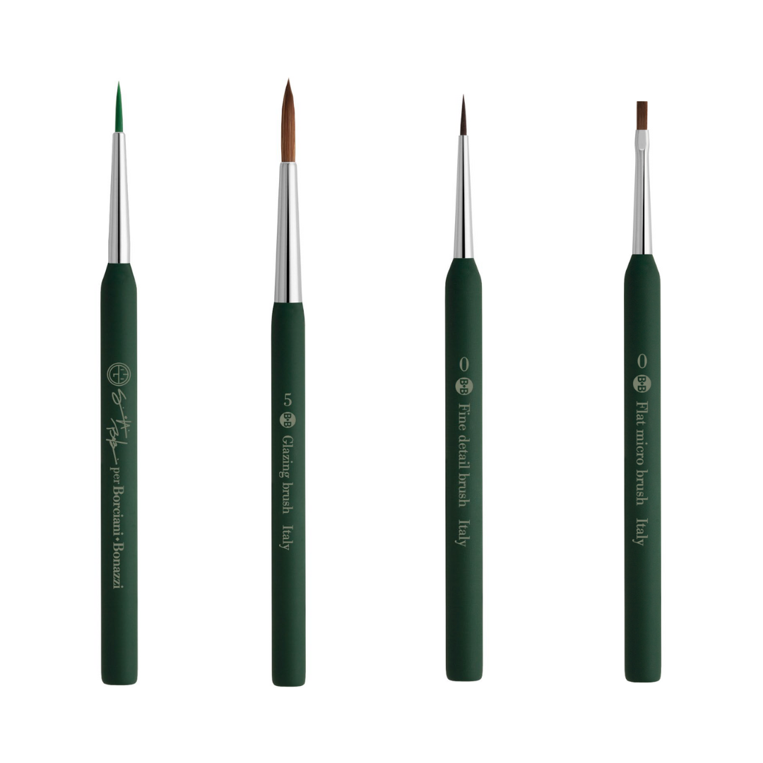 This brush set is the result of a collaboration between Borciani e Bonazzi and the artist Giovanni Balzarani. It features a selection of precise, professional synthetic brushes designed to support a range of detailed techniques in hyperrealism.