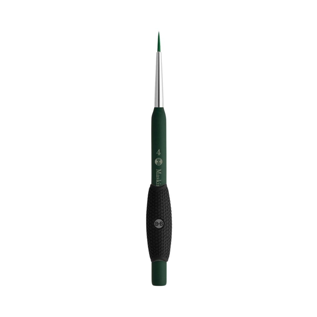 Crafted with green synthetic fibers, this brush combines elasticity with softness, providing a balanced release of water. Suitable for watercolor, acrylic, gouache, and glazing in oil painting, it also excels in fluid color decoration. The round tip delivers smooth, defined strokes and precise detailing when the tip is used.