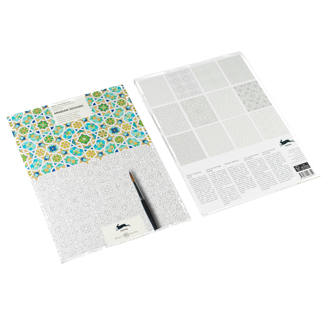 PEPIN Artists’ Colouring Books of Arabian Designs offer 12 stunning motifs printed on 180 gsm acid-free drawing paper. These intricate designs invite you to explore the richness of arabesques using a variety of colouring techniques, such as pastels, gouache, or liquid inks. The high-quality paper ensures vibrant, lasting results, allowing your coloured pages to be framed as works of art.