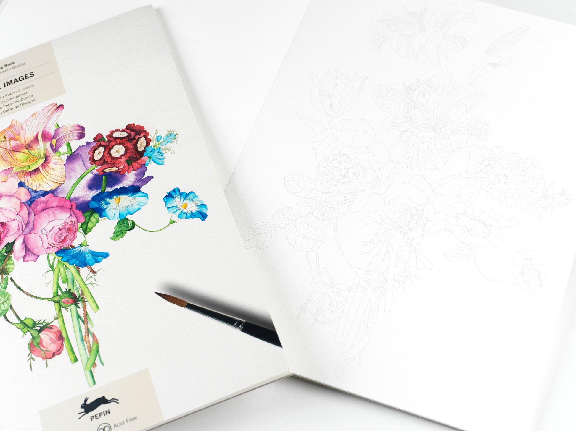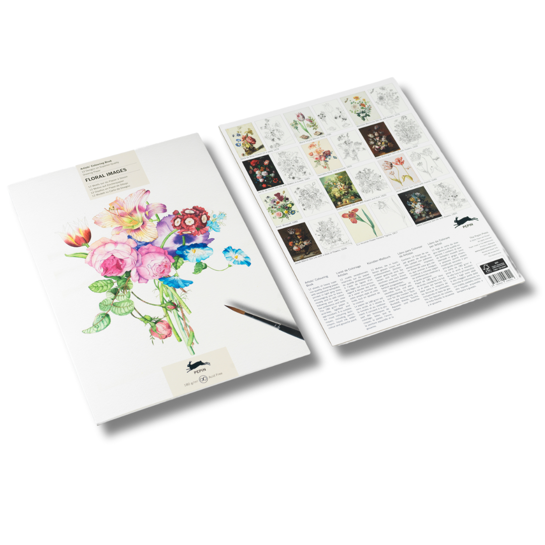 PEPIN Artists’ Colouring Books of Floral Images include 12 beautiful designs printed on superior 180 gsm acid-free drawing paper. The light outlines let you add your personal touch to these natural motifs using pencils, inks, or watercolours. The premium-quality paper ensures vibrant results, allowing your finished artwork to be framed and displayed as timeless floral masterpieces.