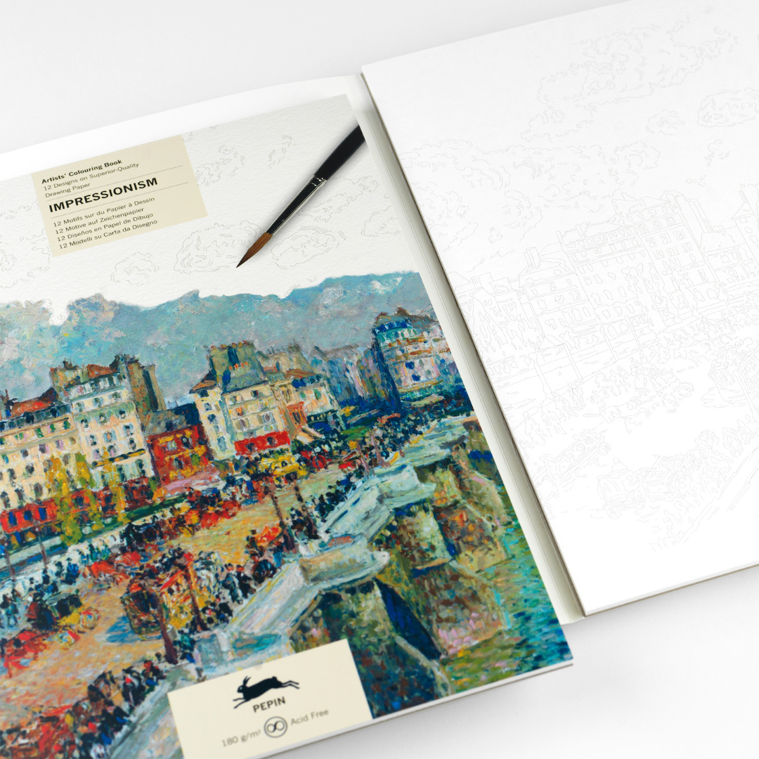 PEPIN Artists’ Colouring Books of Impressionist motifs feature 12 designs printed in very light lines on premium 180 gsm acid-free paper. Perfect for experimenting with colour blending and various mediums such as pastels, watercolours, or gouache, the paper ensures stunning results. Your finished work can be framed as a lasting tribute to this revolutionary art movement.