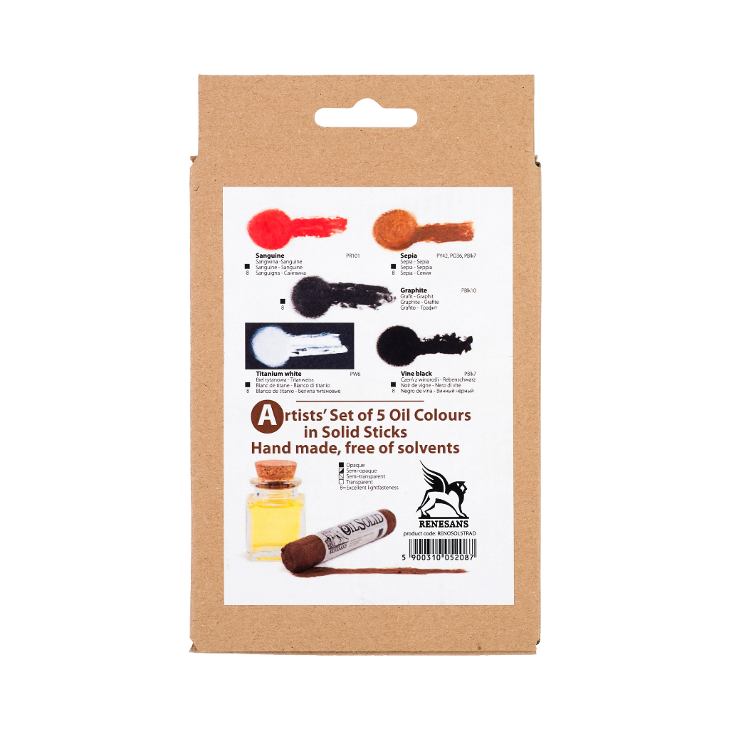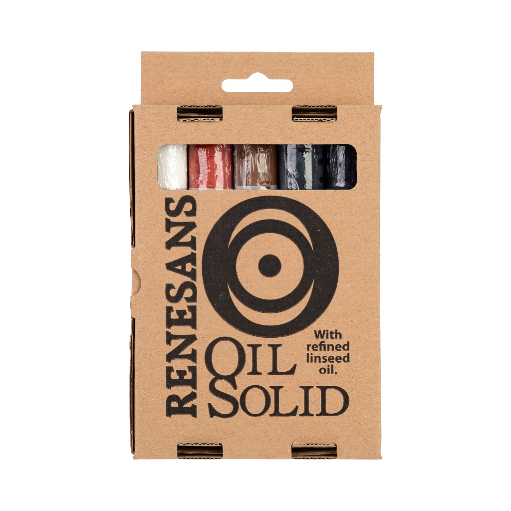 Discover the versatile and creative world of OIL SOLID oil paint bars with our set of 5 handmade paint sticks. The set includes five colors: