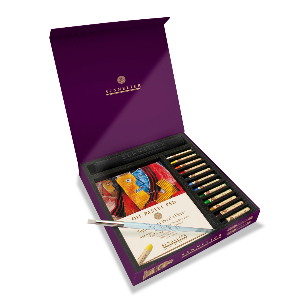 Lúxus olíu pastel sett með öllu sem þú þarft til að hefjast handa. Setið inniheldur 12 hágæða olíu pastela í segulkassa, 340g olíu pastel blokk fyrir æfingar og tilraunir, Symbiose sculpt pensil fyrir nákvæma smávinnu, og Sennelier klút til að blanda og jafna litina. Fullkomið fyrir fagfólk og listamenn sem vilja dýpra tækni sína með traustum efnum og þægilegri geymslu.