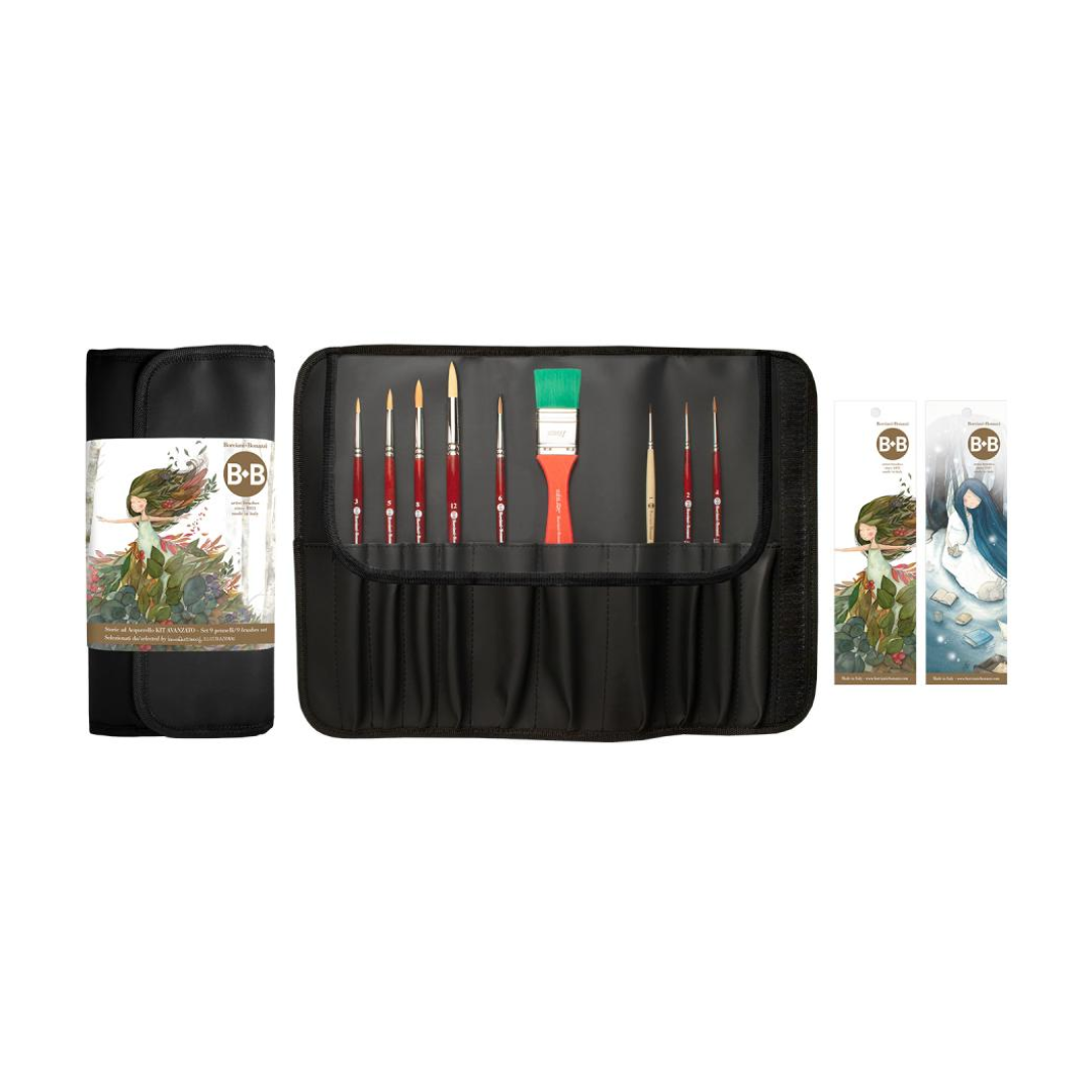 The "Watercolour Stories" Advanced Kit contains: Series 85 size 3 Series 85 size 5 Series 85 size 8 Series 85 size 12 Series 105 size 6 Series 404 Italia size 30 Series 111 size 2 Series 111 size 4 Series 605 size 1