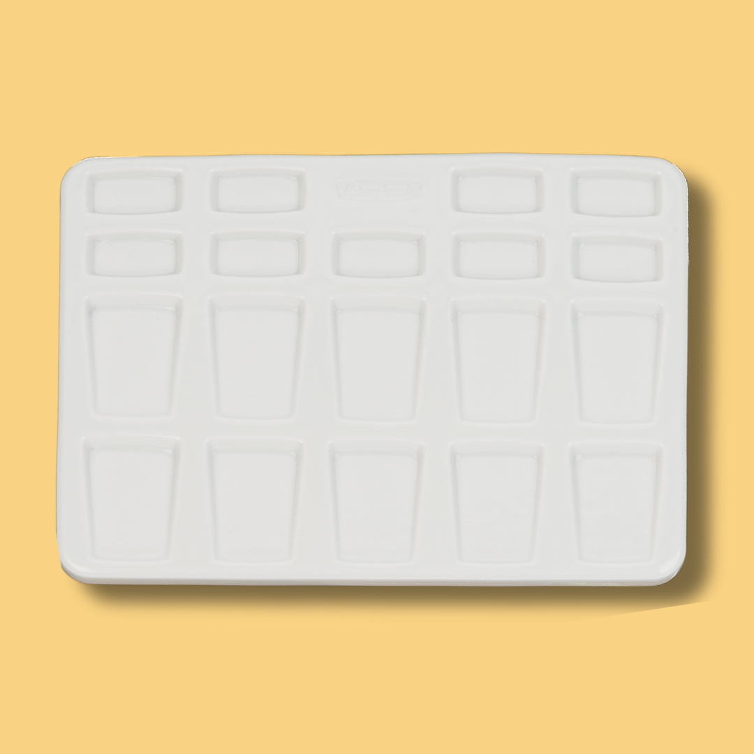 This beautiful porcelain palette by Schmincke has 10 large mixing areas and 9 smaller for blending or adding colours straight from the tube. It is a must-have for every watercolour painter, as porcelain ensures a smooth colour-mixing experience and gives you complete control over the colour saturation.