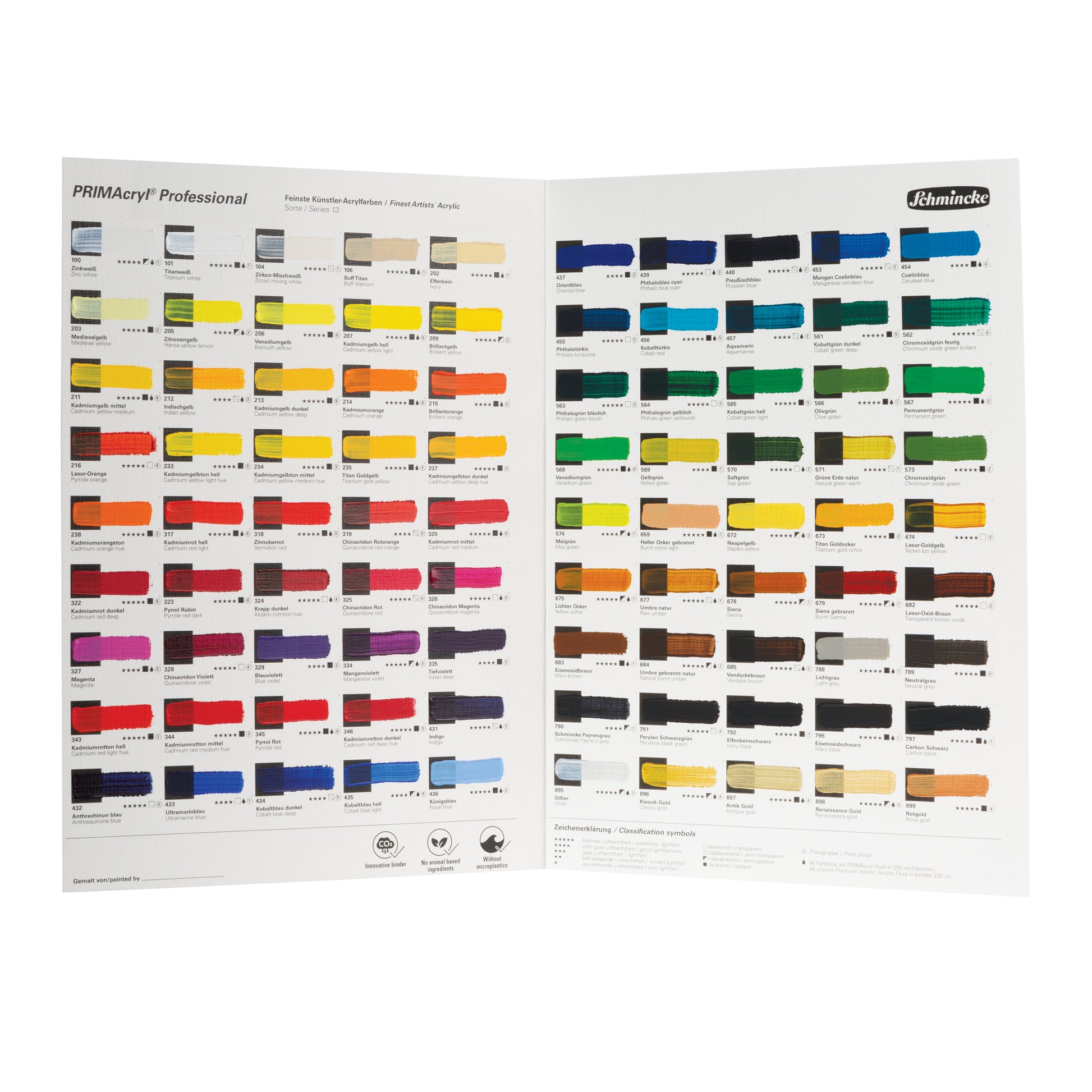 The range of Schmincke's PRIMAcryl contains high-quality, finest acrylic colours that offer a colouristically wide palette of 90 colours in a solid-pasty consistency. Additionally, PRIMAcryl Fluid contains 48 colour-identical tones in a soft-flowing consistency. These colours contain the same high-quality artists’ pigments in maximum concentration.