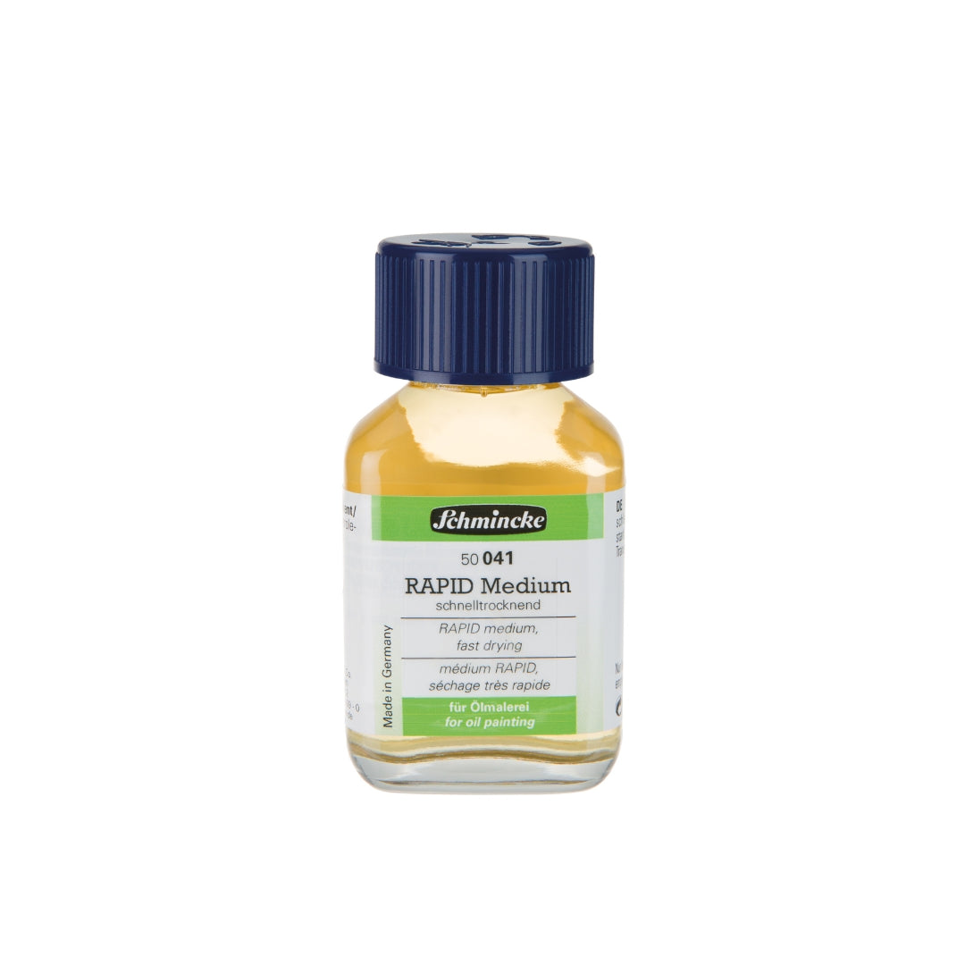 Very fast drying medium for oil colours. Especially recommended for prima painting, transparency painting, and also for the application of upper colour layers on already dried layers; increases gloss and transparency. Quick application is necessary as the mixture dries fast on the pallete. Close immediately after use. Dosage: 10 to max. 20%.