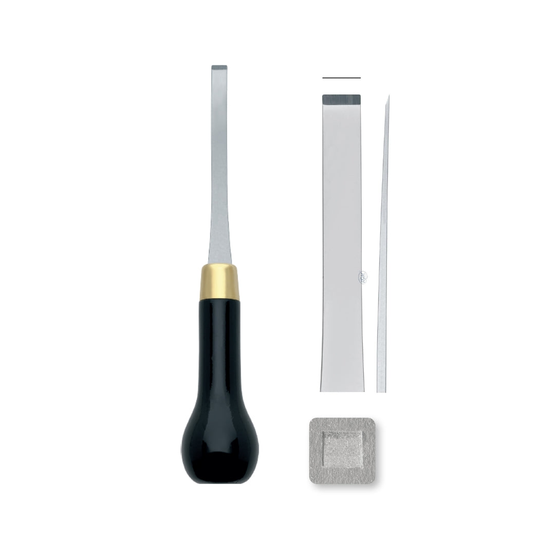 Each chisel features a hand-sharpened, tempered steel blade with a distinctive bent shape, designed to enhance precision and make cutting smoother and more efficient. The lacquered wooden handle is carefully crafted for a sturdy grip, providing both comfort and control. Its robust design allows you to apply greater pressure safely and effectively, ensuring superior performance for intricate engraving tasks.