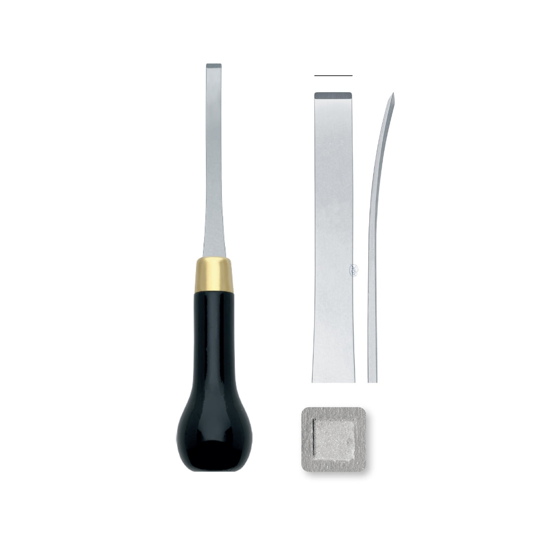 Each chisel features a hand-sharpened, tempered steel blade with a distinctive bent shape, designed to enhance precision and make cutting smoother and more efficient. The lacquered wooden handle is carefully crafted for a sturdy grip, providing both comfort and control. Its robust design allows you to apply greater pressure safely and effectively, ensuring superior performance for intricate engraving tasks.