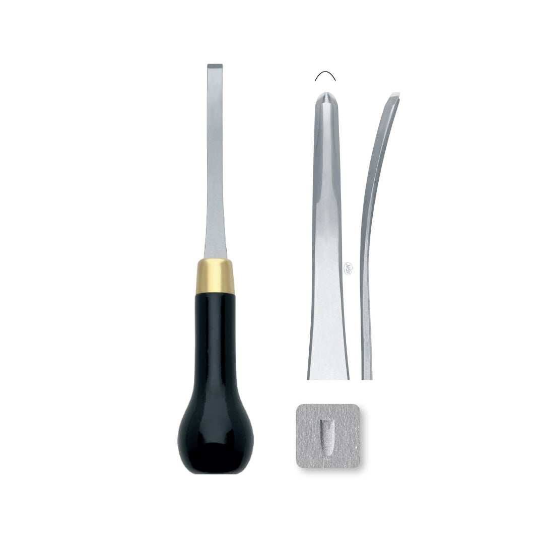 Each chisel features a hand-sharpened, tempered steel blade with a distinctive bent shape, designed to enhance precision and make cutting smoother and more efficient. The lacquered wooden handle is carefully crafted for a sturdy grip, providing both comfort and control. Its robust design allows you to apply greater pressure safely and effectively, ensuring superior performance for intricate engraving tasks.