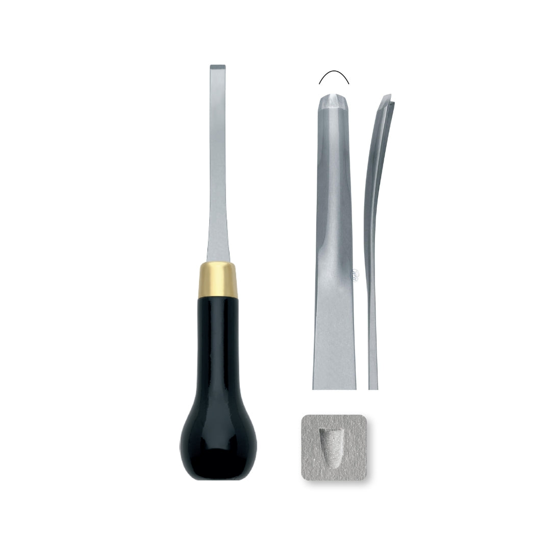 Each chisel features a hand-sharpened, tempered steel blade with a distinctive bent shape, designed to enhance precision and make cutting smoother and more efficient. The lacquered wooden handle is carefully crafted for a sturdy grip, providing both comfort and control. Its robust design allows you to apply greater pressure safely and effectively, ensuring superior performance for intricate engraving tasks.