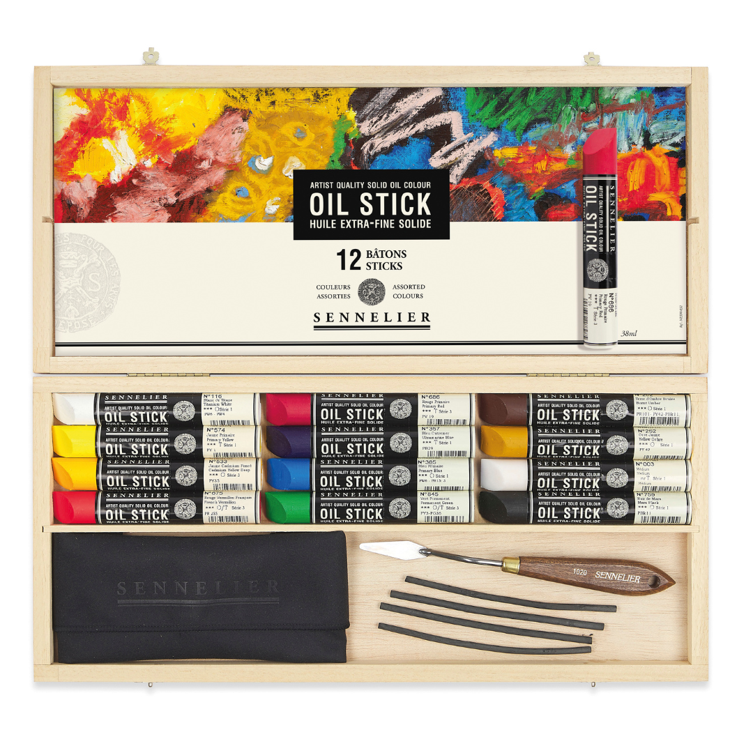 Sennelier Oil Sticks deliver professional-grade oil painting in a convenient stick format. Formulated with pure pigments suspended in vegetable oils, these sticks resist yellowing and provide the same versatility as traditional oil paint. The neutral mineral base creates the solid stick form while maintaining authentic paint properties. Experience rapid surface drying—typically within 24 hours—allowing faster layering than conventional oils. The suppleness of the medium supports diverse techniques, from blending to impasto effects.