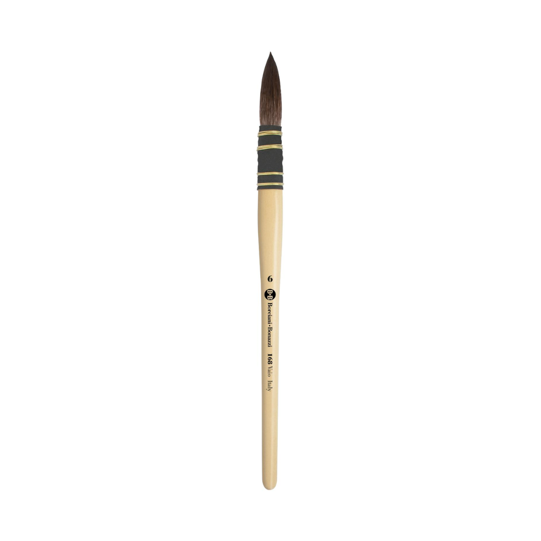 Series 168 is made with a bound-by-hand artisan handle, which ensures the natural hair has greater absorbency and a slow release of water. The quill brush is ideal for diluted techniques requiring changes in pressure, making it suitable both for expansive backgrounds and for very subtle and precise details.