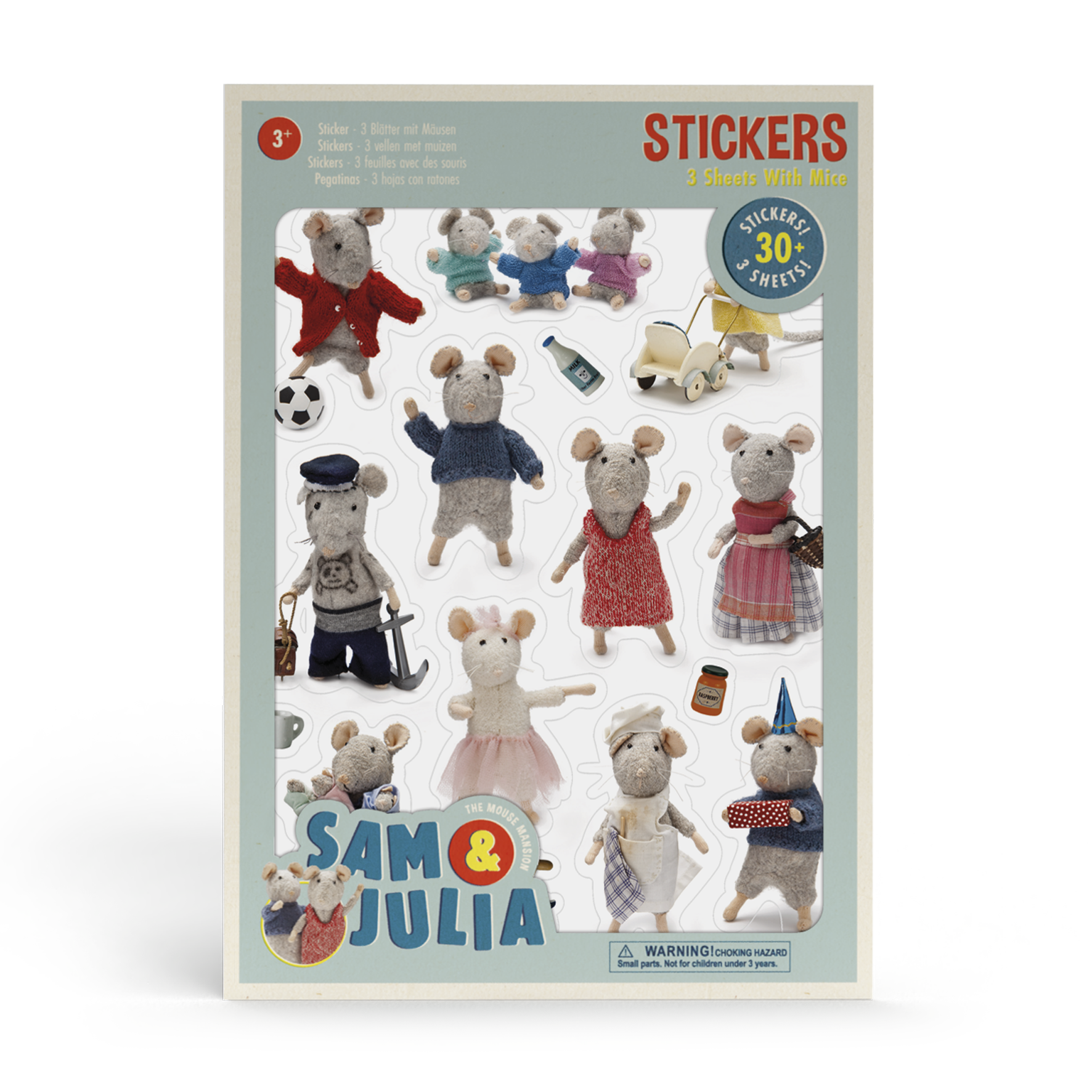 Put a sticker of Sam, Julia, the triplets or Grandpa Sailor on a coloring sheet, on your bedroom wall or inside the kitchen cabinets (don't tell mom and dad). Write a letter to your grandfather with a sticker of Ella as a signature or gift your friends a mouse sticker.