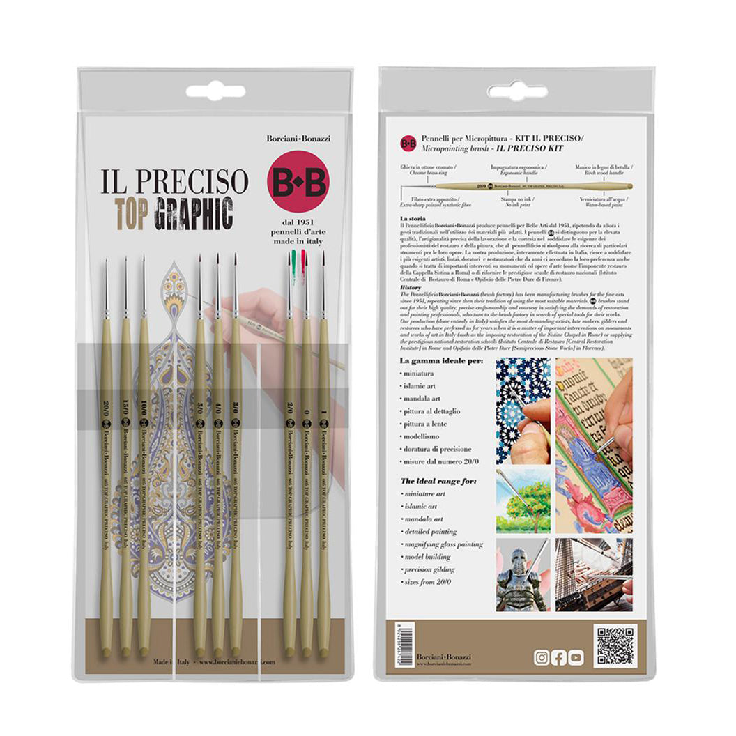 The 9-brush kit IL PRECISO TOP GRAPHIC contains the full range of brushes.