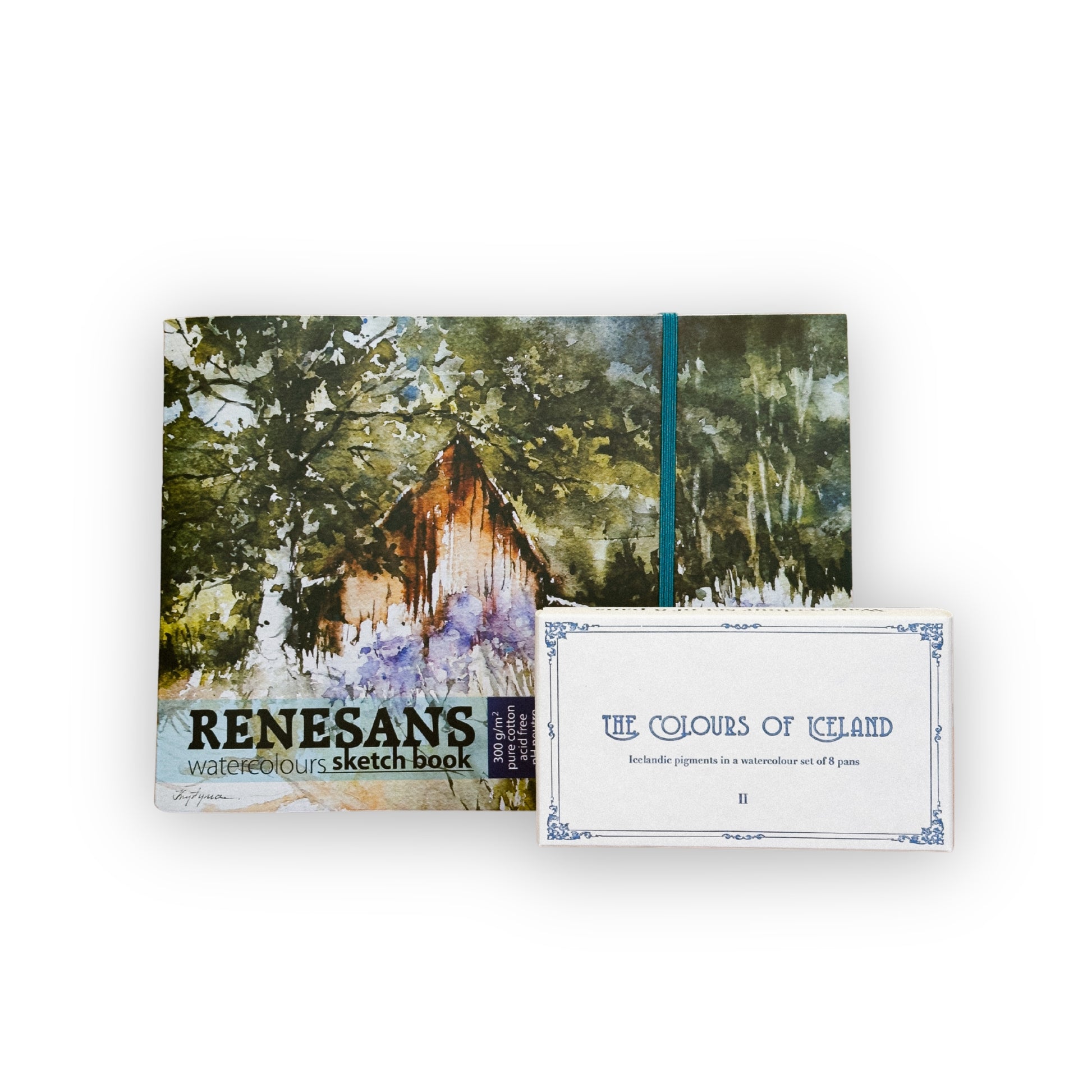 Lyftu vatnslitunum þínum á næsta stig með sérstöku Black Friday tilboði. Þessi pakki sameinar hið einstaka Vatnslitatsetttið okkar – Litirnir Íslands, handblandað með sérstöku úrvali litarefna sem fanga íslenska náttúru, og Magnani Italia A5 skissubók, sem fylgir ókeypis með hverju setti.
