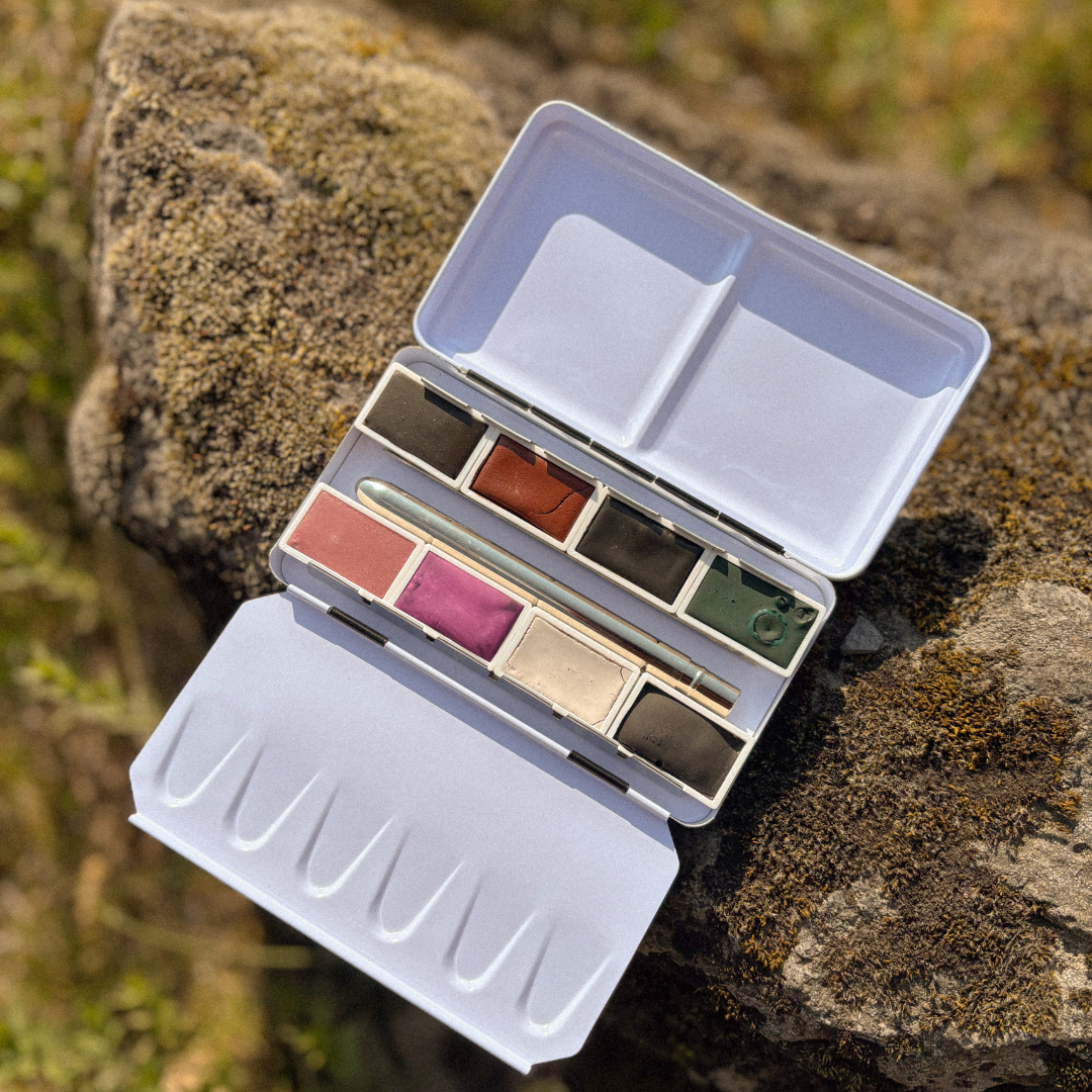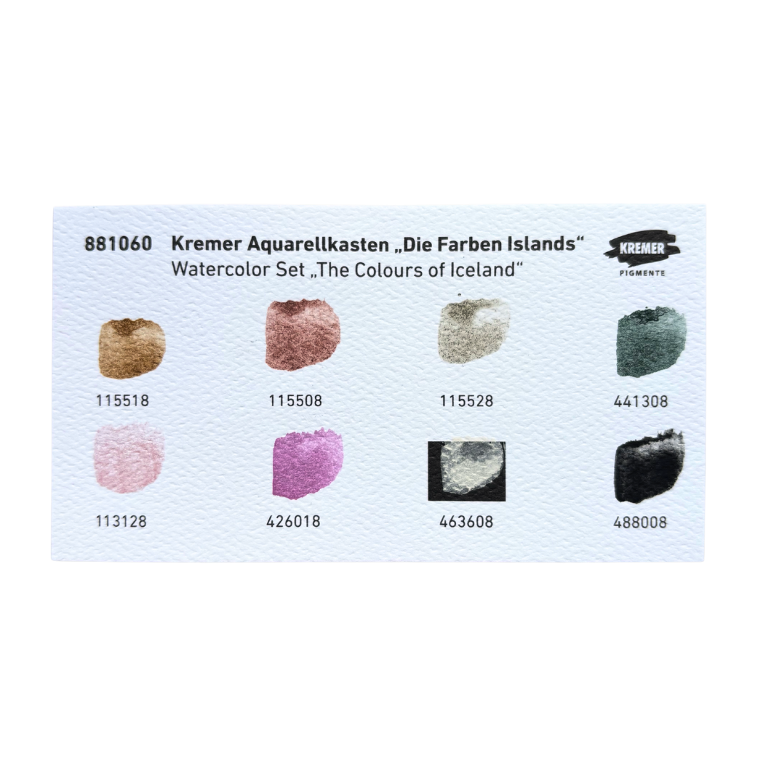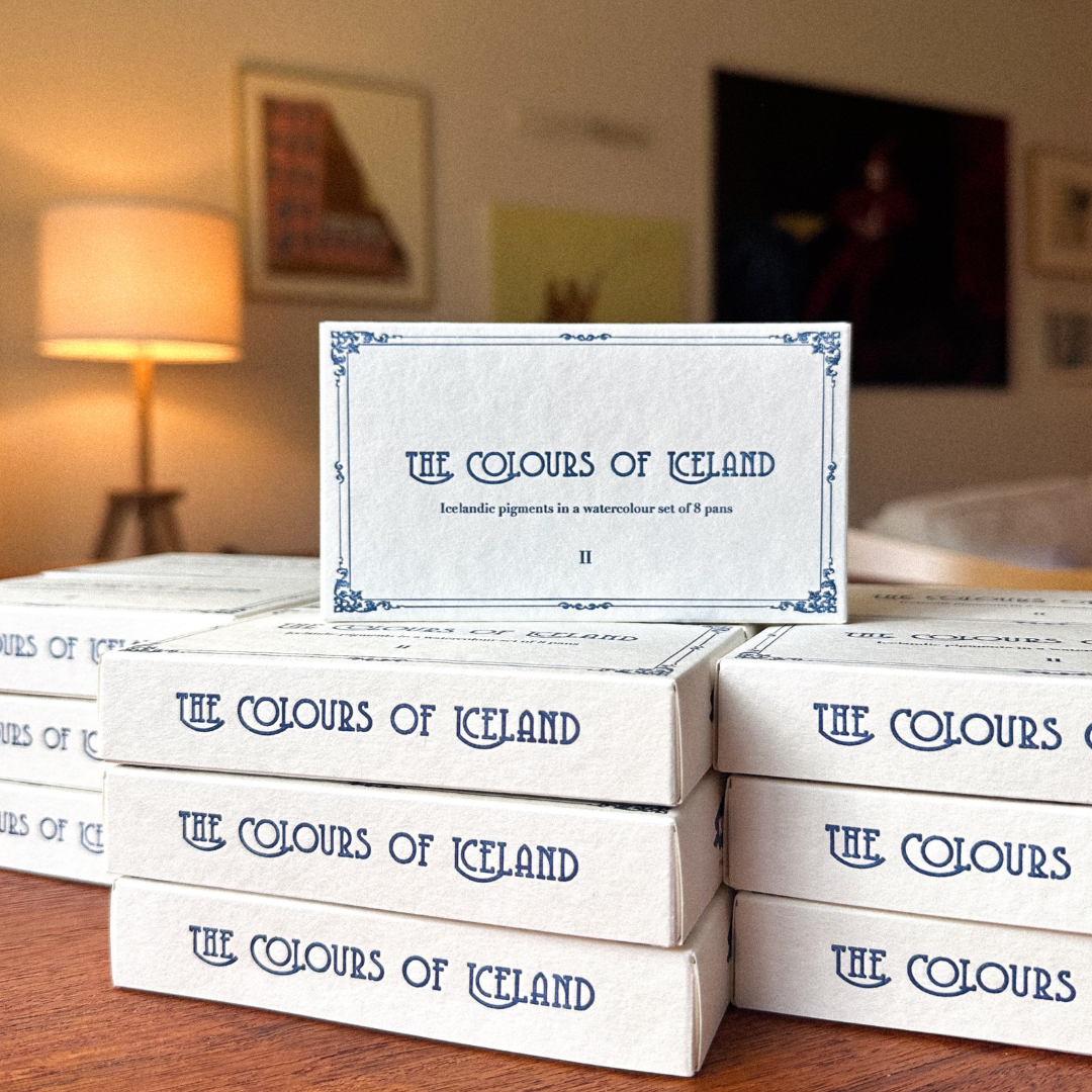 The history of this exquisite set, featuring a carefully curated colour selection, begins with David Kremer's journey to Iceland in 2013. It was during this year that promising earths for pigment production were discovered and transported to Germany to be milled into artist pigments. The partnership between Myndlistarvöruverslunin artsupplies.is and Kremer Pigmente began in 2023, and the fruit of their collaboration is this beautiful set, which we proudly present to you.