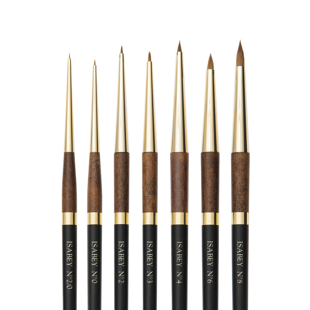Extremely fine and soft, the Kolinsky Sable respond to the lightest touch, spreading out into a fan, creating a wide line and returning to their original position whilst retaining a perfect tip. With the Isabey Grey Squirrel, an extremely effective water retaining brush, the subject of a work can be executed with ease. Sable brushes absorb more colour, less water and provide more relief and intensity with their responsiveness.
