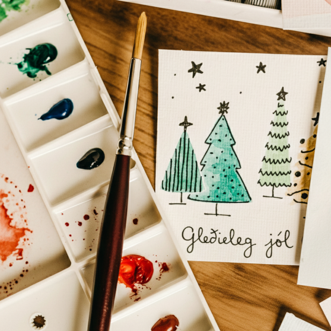 Vatnslitapóstkort - Jólastund með litum [14.12.2025 - 16:00]