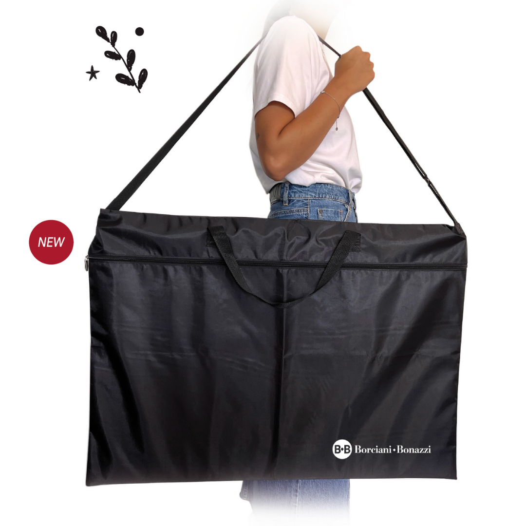 Waterproof bag for drawings and works in A1 size with zip. The bag has an adjustable shoulder strap and handles sizes up to 86 x 62 cm.
